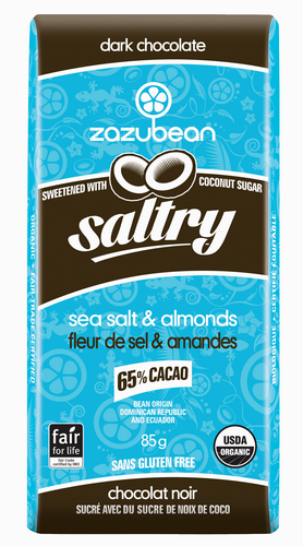 Zazubean Organic Saltry Sea Salt & Almond Chocolate Bar w/Coconut Sugar